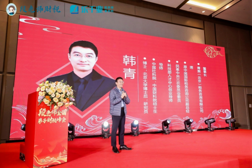 備受矚目的原國家稅務總局大咖韓青博士閃亮登場,全場瞬間安靜,所有人的目光聚焦于舞臺。韓青博士深入淺出地開講《金稅四期背景下企業稅務風險與應對》。