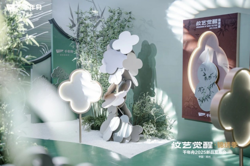 在與“姚建萍刺繡藝術”的攜手合作中,千年舟巧妙地汲取了蘇繡精湛傳統技藝所蘊含的文化精髓,并憑借匠心獨運的工藝與創新思維,成功地將古老的非遺底蘊凝于板材之上,讓蘇韻在現代家居空間中悠然流淌,實現“紋”化賦新。