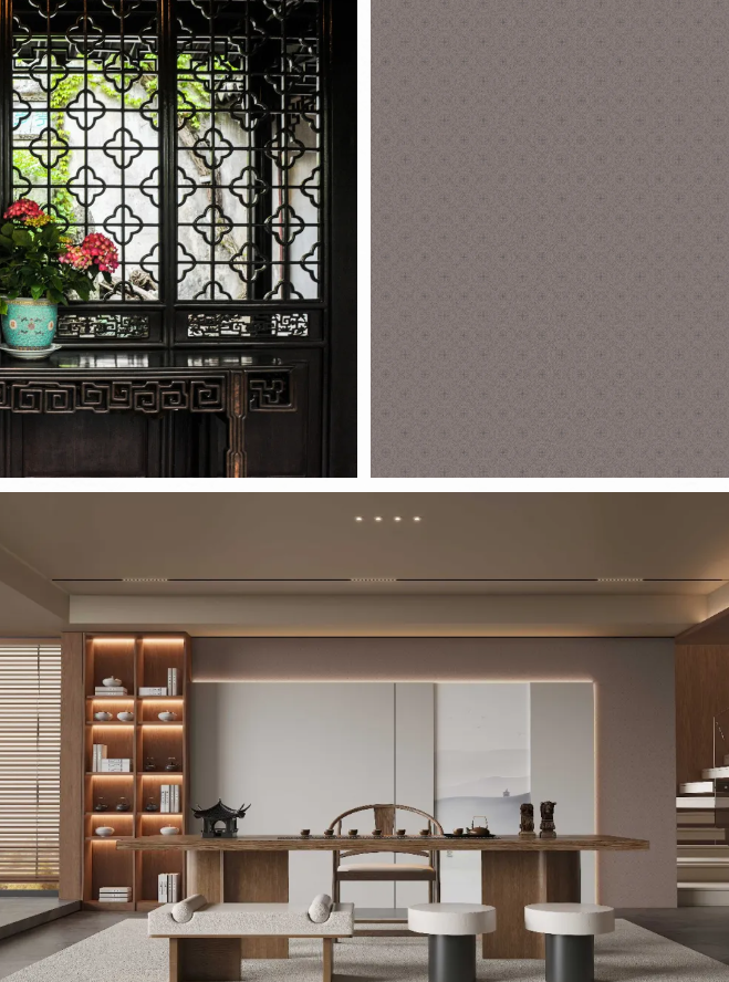 千年舟從其中找尋靈感提煉出海棠紋、桂花紋、纏枝牡丹紋、蘇繡平針法底紋等元素,再經(jīng)過重新排列組合后,推出古典韻味與現(xiàn)代審美完美交融的4款原創(chuàng)蘇韻花色。