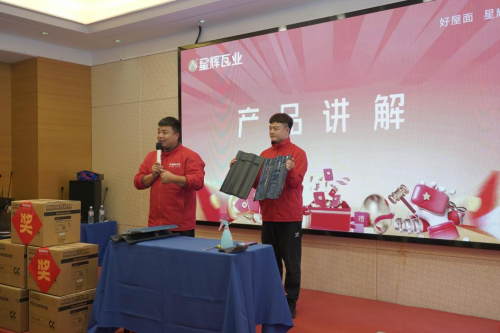 緊接著,星輝瓦業動銷組長韓超為現場來賓帶來一系列全面、深入且生動的產品講解,同時也分享了品牌在屋面瓦領域的獨家技術,從鐵礦石的創新應用,到釉面自潔工藝的運用,讓大家對星輝瓦業的產品有了更全面和更清晰的認知。