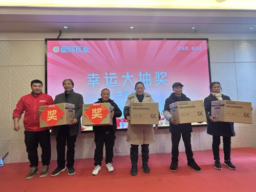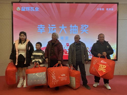 各位領導致辭結束后,終于迎來了激動人心的抽獎環節,為回饋廣大用戶,星輝瓦業犍為專賣店在總部的支持下,凡是在活動期間簽單,均享“下單豪禮享不停”、“驚喜折扣讓利”等一系列活動政策。一輪又一輪的抽獎,一個個幸運兒依次產生,精美獎品被陸續抽出。