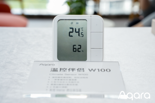 另外,現場同時亮相了溫控伴侶W100和網關M100兩款新品。W100支持遠程溫控、內置高精度傳感器,且是Aqara首款支持 Matter over Thread 的產品。
