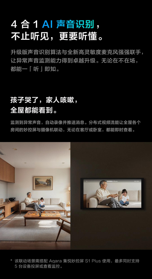 Aqara智能攝像機(jī) G5 Pro內(nèi)置本地化AI算法,無(wú)需依賴(lài)云端即可完成七合一視覺(jué)識(shí)別與四合一聲音識(shí)別。例如:包裹守護(hù):智能監(jiān)測(cè)包裹送達(dá)或取走狀態(tài),實(shí)時(shí)推送提醒,避免快遞丟失風(fēng)險(xiǎn);車(chē)輛聯(lián)動(dòng):識(shí)別指定車(chē)輛進(jìn)出,自動(dòng)聯(lián)動(dòng)車(chē)庫(kù)門(mén)開(kāi)關(guān)或其他安防設(shè)備;異常告警:鏡頭被遮擋85%以上時(shí)觸發(fā)報(bào)警,并通過(guò)全屋設(shè)備聯(lián)動(dòng)威懾入侵者;聲音響應(yīng):偵測(cè)嬰兒啼哭后,可實(shí)時(shí)推送畫(huà)面至家長(zhǎng)設(shè)備,或聯(lián)動(dòng)室內(nèi)屏幕顯示監(jiān)控流。