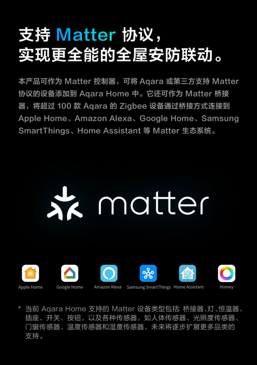 作為Aqara首款支持戶(hù)外使用的網(wǎng)關(guān)設(shè)備,G5 Pro集成Zigbee 3.0與Thread雙協(xié)議,并兼容Matter標(biāo)準(zhǔn),可同時(shí)作為Matter Controller與Bridge使用。用戶(hù)可通過(guò)Apple Home、Aqara Home等平臺(tái),將攝像機(jī)與智能門(mén)鎖、燈光、傳感器等設(shè)備聯(lián)動(dòng),構(gòu)建晝夜安全無(wú)憂(yōu)的安防體系。