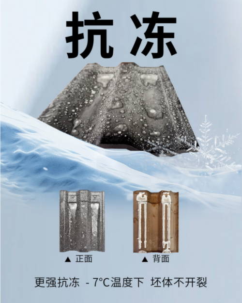 內在質量方面,高寒瓦精選板巖燒制,通體瓦坯,密度高,吸水率小于5%,抗凍性能良好;且獨創工藝,高噸位壓制成型,扛折、耐壓強度提升30%,承重性遠超國家標準。