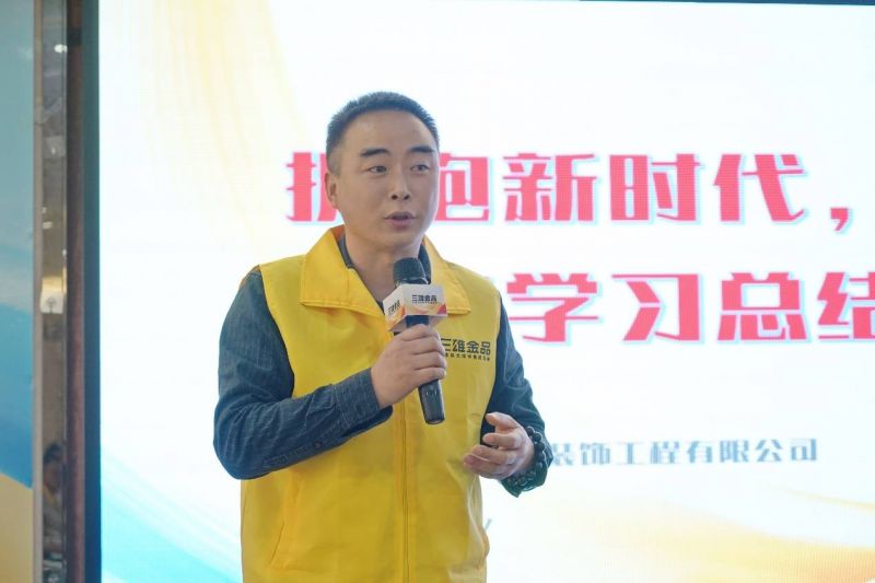 現場,多位經銷商代表分享了他們的成功經驗和對未來的展望。蘇州時光動力裝飾工程有限公司總經理孫云武以《擁抱新時代,適應新環境,認真學習總結,在奮斗中尋求突破》為主題,分析了當下市場的競爭態勢。他指出,盡管市場競爭激烈,但市場空間依然廣闊。面對目標客戶漂移和市場營銷模式升級,經銷商應總結成功經驗,以人為本,堅守線下,突破線上,通過短視頻傳播和線上直播訂貨會拓寬新模式,增加信心。