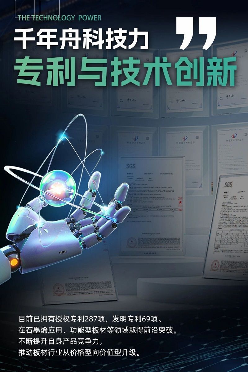 乙巳年二月初二“龍?zhí)ь^”,千年舟以一款“石墨烯黑金板”的橫空出世,宣告了前沿科技賦家居板材時(shí)代的到來(lái)。科技的力量,總以“厚積薄發(fā)”的深度,推演著產(chǎn)業(yè)的浪潮。千年舟敢于“首創(chuàng)”的背后,是26年來(lái)深耕行業(yè)所積累的科技生態(tài)體系。而這樣的創(chuàng)新堅(jiān)守,也為品牌、行業(yè)和用戶,帶來(lái)了切實(shí)的體驗(yàn)和價(jià)值。