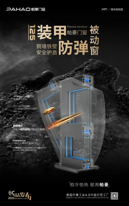 特別值得推薦的是,此次展會,帕豪門窗還將隆重推出125系列裝甲防彈被動式鋁合金系統(tǒng)門窗,框扇多層疊加式裝配穿甲鋼板,具備防彈的性能。同時配置四層聚合物SGP防彈膜及多腔中空低輻射高性能玻璃,保溫效果極好,可用于超低能耗的被動式建筑。裝配德國諾托150KG高承重五金,無底座執(zhí)手,多點(diǎn)鎖閉,安全可靠。采用德國泰諾風(fēng)超大規(guī)格54mm多腔體PA66隔熱條,整體框架抗風(fēng)壓性更強(qiáng),以全新的性能,帶來具有差異化的市場競爭力,助力渠道打破內(nèi)卷、制勝終端。