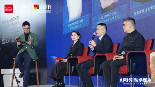 (從左至右分別是深圳市家具行業協會新媒體中心主任崔卓君、AI-NEW MALT創始人&中國室內AI設計大賽發起人 張月新、顧家家居定制家居事業部政委 鄧濤、群核科技副總裁、酷家樂大家居KA事業群總經理湯錫峰)