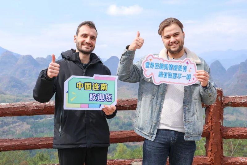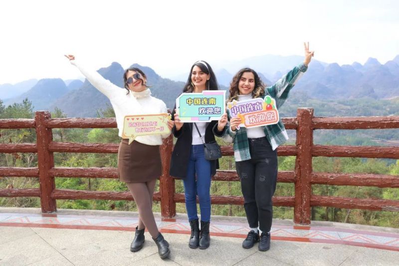 在萬山朝王觀景平臺,留學生們錄制了創意宣傳短視頻,用多國語言為連南熱情“打call”,向世界展示連南的獨特魅力,吸引更多人前來體驗連南少數民族地區的文化與生態資源。