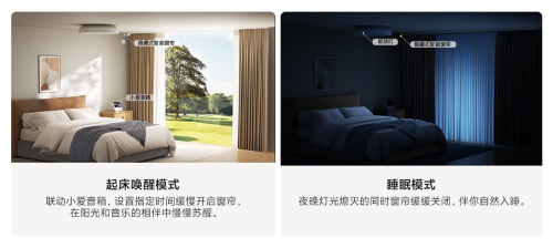 可與家中其他智能設備聯動,如“起床模式”自動拉開窗簾,“觀影模式”同步關閉燈光與窗簾;