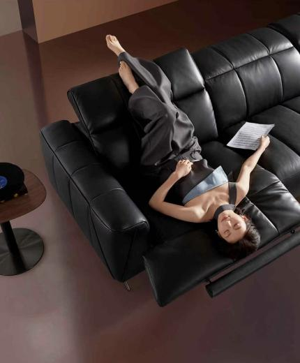 KG.172赫茲沙發不僅是一款功能型產品,更是一件藝術品。其設計靈感源于“城市節奏”與“靈魂共鳴”,外觀采用鋼琴鍵造型,通過方正體態與起伏線條的對比,營造出“音符跳躍”的視覺韻律。V型外沿坐墊設計則巧妙平衡了功能與美學——躺位閉合時整體造型簡約大氣;展開時外拓空間,打破邊框束縛,釋放更多可能性。