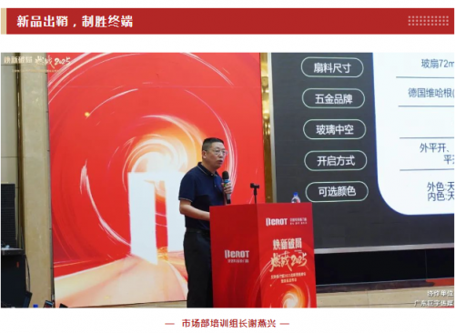 家有千人千面,美好生活不同模樣。大會上,市場部培訓組長謝燕興向與會者展示了新品的獨特魅力和技術優勢。這些新品不僅在設計上將產品功能和不同風格的美學融為一體,更在材質、工藝、性能、色彩上實現了全面升級,彰顯了貝洛特系統門窗在技術創新和產品研發方面的卓越實力,滿足消費者對時尚感、多元化和舒適體驗的家居需求。