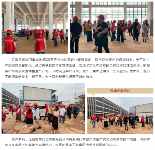 3月28日,陽光明媚,來自全國各地的經銷商們滿懷期待地乘坐大巴前往貝洛特系統門窗位于四會的新廠參觀。一下車,他們就被新廠宏大的規模所震撼。