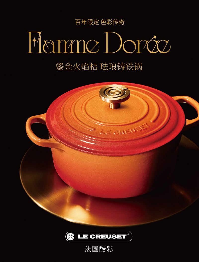 作為數十年來行業的先鋒,酷彩推出100周年紀念產品系列——鎏金火焰桔(Flamme Dorée),致敬品牌標志性色彩火焰色。如今,光感礦物和創新的第三層琺瑯,打造出鎏光溢彩的璀璨效果。