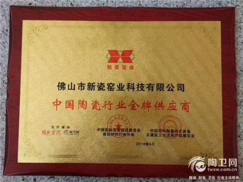 熊曉峰:近三年以來,新瓷窯業先后斬獲“中國陶瓷行業金牌供應商”、中國陶瓷工業協會“節能窯爐標桿企業”、“陶瓷裝備技術革新金獎”等權威榮譽。