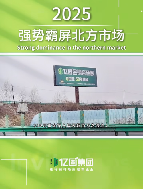 在東北的高速公路上,我們能看到億固品牌的巨幅廣告牌,億固瓷磚強勢膠霸屏東北市場。