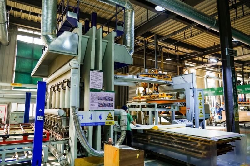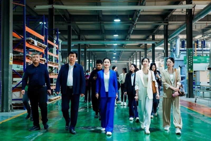 臨沂工廠則通過十一條自動壓貼生產線、一條PET生產線、兩條成品檢板線等高效配置,形成了完善的貼面板加工體系,承擔著從基板到成品的高效協同任務。媒體們對其高效產線的自動化程度、現場管理的標準化流程以及產品質量的一致性紛紛表示贊賞。