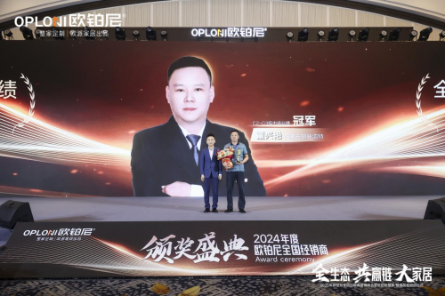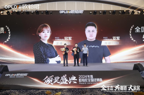 歐鉑尼經銷二分部經理葛發兵、歐鉑尼配套產品部經理王宇為全國卓越店長頒獎