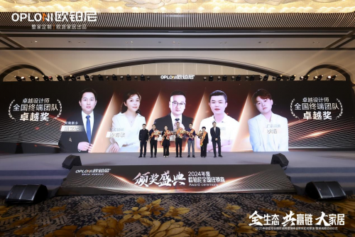 歐鉑尼營銷支持部經理黃云峰、歐鉑尼產品規劃部經理徐宏介為全國卓越設計師頒獎