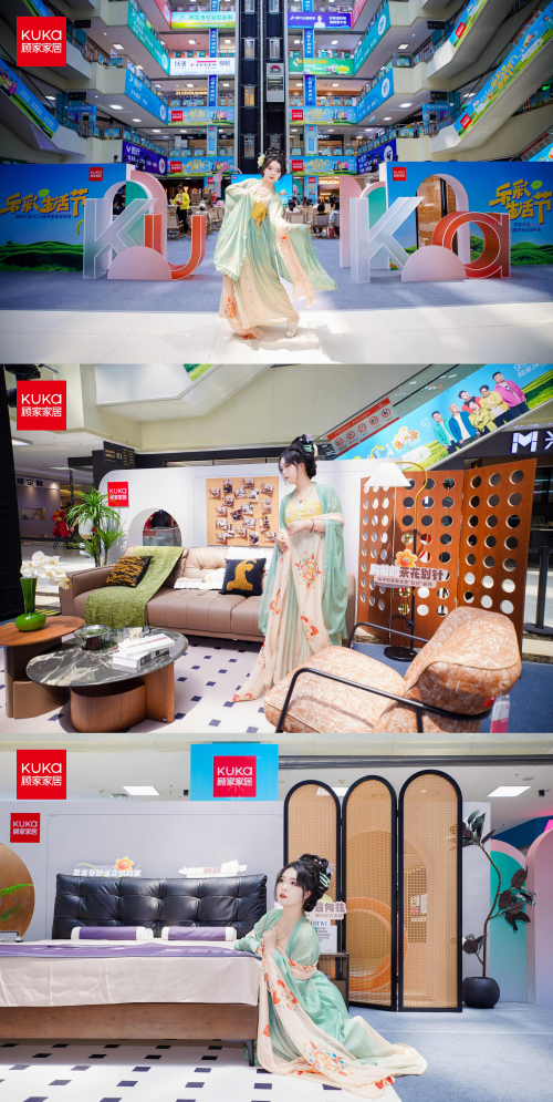 活動(dòng)現(xiàn)場(chǎng)展出的顧家樂活中古風(fēng)全屋新品LH.3007和LH.B1022PQ1,從客廳到臥室,打破材質(zhì)與結(jié)構(gòu)界限,融合牛皮、布藝、實(shí)木、新材料等多種材質(zhì),營(yíng)造出復(fù)古與舒適交織的家,也吸引眾多消費(fèi)者駐足、互動(dòng)體驗(yàn)。而現(xiàn)場(chǎng)更有漢服愛好者打卡,身著唐朝特色的服飾與妝容,讓中古風(fēng)邂逅千年長(zhǎng)安,營(yíng)造出別有韻味的居家場(chǎng)景。