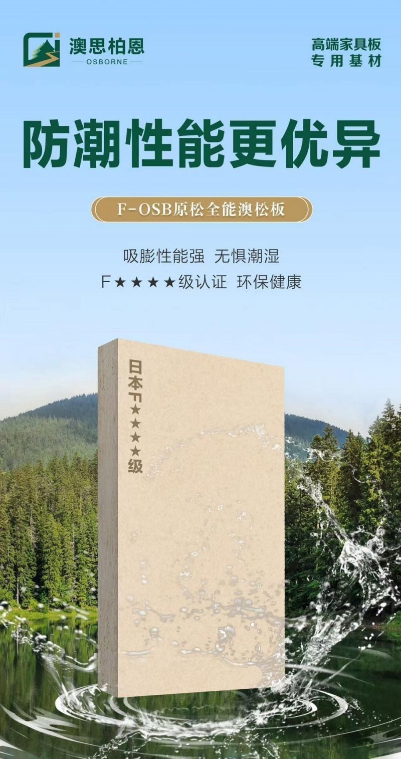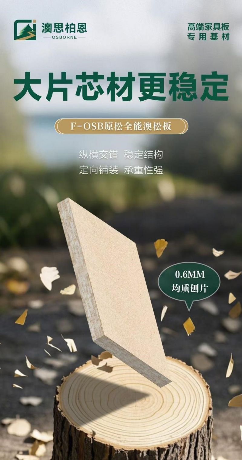 結合這一趨勢,澳思柏恩歷經多年研發,攻克了傳統板材易變形、耐潮性差的技術瓶頸,推出F-OSB原松全能澳松板,以創新重新定義行業標準,為家居健康筑牢防線。