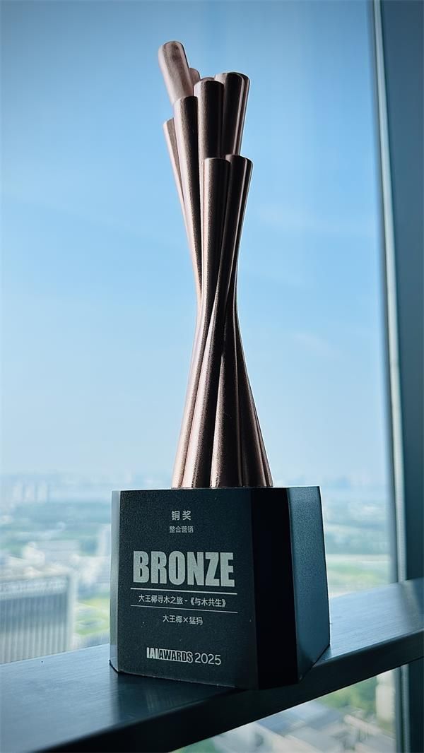 近日,2025傳鑒星光大賞在北京盛大舉行,同期揭曉的第25屆IAI傳鑒國際廣告獎金銀銅獲獎名單中,大王椰文化IP“尋木之旅 -《與木共生》”TVC創作憑借超卓的專業力、創作力和整合力等通過層層嚴格考核篩選,于海內外1017家企業提交的3802件參賽作品、案例中脫穎而出,榮獲本屆傳鑒國際廣告·整合營銷銅獎。