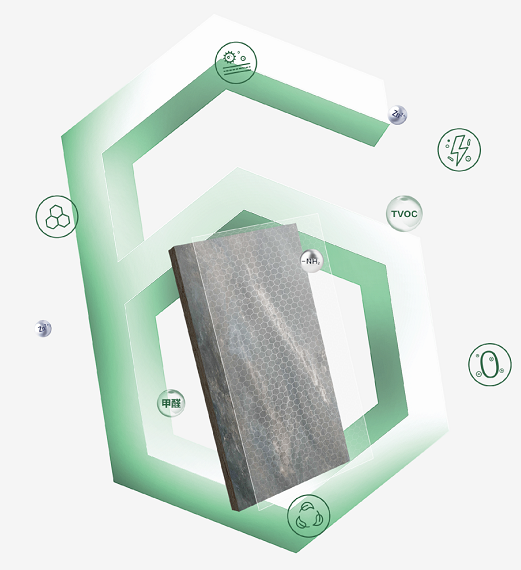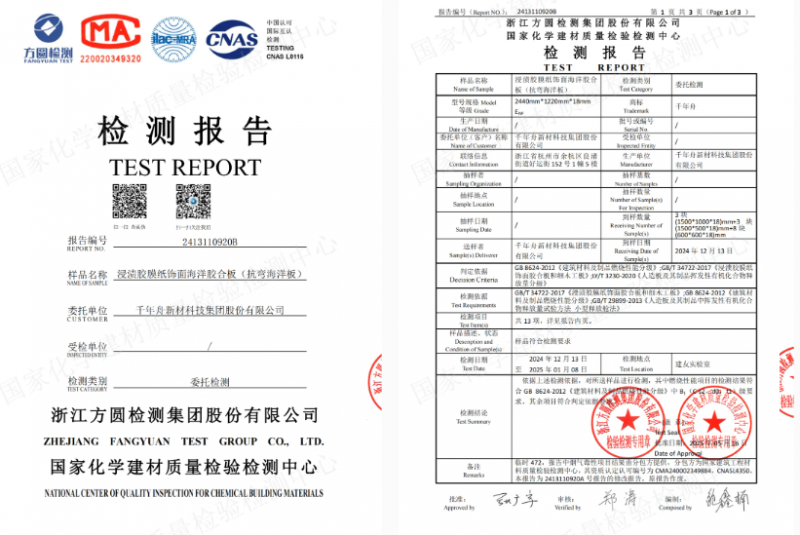 千年舟抗彎海洋生態板飾面以三胺紙飾面為主要材料,以鋅離子+石墨烯雙重無機抗菌劑作為原料,實現廣譜抗菌、抗病毒、0級防霉、高效凈醛、除TVOC和石墨烯雙重抗菌抗病毒功效,六維智護體系,全方位守護居家健康。