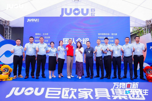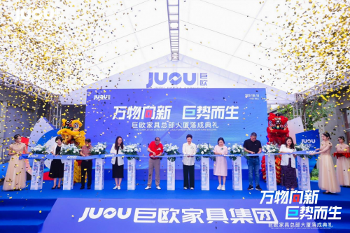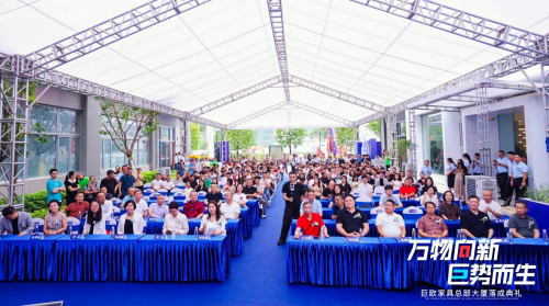 典禮現場,彩帶飄揚、花團錦簇,嘉賓云集,共襄盛舉。從政府主管部門、商協會領導到行業翹楚,從合作伙伴到業界同仁,以及網紅達人及媒體代表等,約500余人,共同見證巨歐家具集團深耕行業十九載后,以總部大廈落成為起點,邁向全球化戰略布局的壯闊新篇。