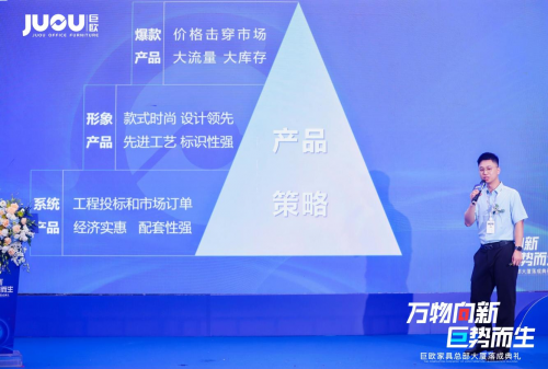 巨歐家具集團副總經理王俊以《讓辦公家具沒有難簽的單》為主題,介紹了巨歐家具集團的品牌定位、市場定位、客戶定位和價格定位,對平臺結構、產品策略、合作模式、服務保障等進行了解讀和詮釋。
