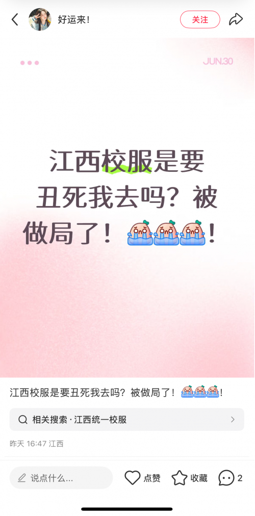 近期,江西、遼寧省校服管理推行“一市一款”,各市校服款式征集活動引發(fā)了各界關(guān)注。在追求整齊劃一的背后,一系列問題浮出水面。