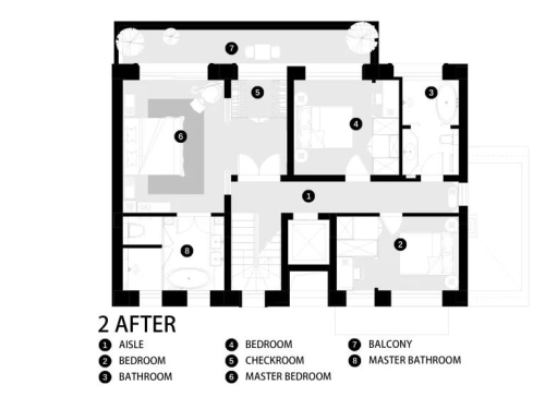 改造后: 我們設計師通過空間的規劃與巧妙布局,在自然與人工之間尋找平衡。在進門玄關處設計隱藏式梯形鞋帽柜,并以兩扇黑白分明的雙色門強化室內與室外的界限,將玄關與室內分隔。在地下室大刀闊斧地拆除部分墻體改為寬闊的落地窗。為房子量身定制排水方案,增設隔潮墻,讓地下空間免受陰暗潮濕的困擾。設計鋼板與實木混合的旋轉樓梯。新增霧霾藍百葉窗,在地下室模擬自然光的裝置藝術。全屋的軟裝陳列不會過度刻意,傳遞出祥和悠閑的生活方式。
