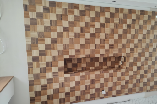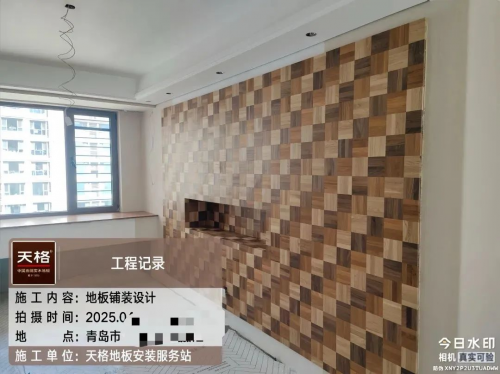 天格的安裝服務按實際鋪裝面積計價,絕不為追求速度而降低施工標準。地板安裝前都需要對地面、墻面進行專業的處理,在達到安裝標準后,進行防潮膜鋪設、地板試鋪、正式安裝等工序。高端的地板,需要配備高標準的安裝服務,才能確保地板的后續使用過程中穩定耐用、經久不變形,給用戶創造省心無憂的使用體驗。這些隱性價值,正是天格總部的專業安裝服務與散裝游擊隊的本質區別。高品質的產品,加高標準的安裝,使得這款地板整體效果非常精致,而且總部的安裝工程師還能提供上墻等服務。雖然看起來安裝費貴,但卻帶來了物超所值的效果。
