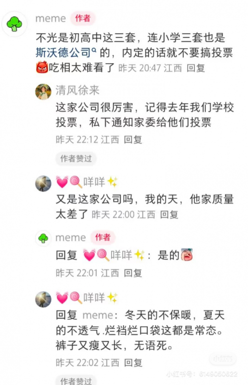 若完全放開自愿性,統(tǒng)一款式會因采購零散失去規(guī)模效應(yīng),導(dǎo)致“統(tǒng)一標(biāo)準(zhǔn)無實(shí)質(zhì)意義”的執(zhí)行困境。江西統(tǒng)一校服的政策剛出,不少家長在社交平臺吐槽:“擬定的校服根本沒經(jīng)過投票,都是內(nèi)定的”,決策機(jī)制的缺失剝奪了教育共同體的參與權(quán)。校服從教育符號異化為管理工具,折射出行政權(quán)力對個體選擇的隱形擠壓。更有家長直接質(zhì)疑:為什么各市要統(tǒng)一校服?每個學(xué)校自己的特色和辨識度是學(xué)校文化的一部分,失去了校服的意義。怕多收費(fèi)防貪污,完全可以統(tǒng)一招標(biāo)。全市統(tǒng)一款式的量,普通老百姓看了數(shù)字會覺得多,其實(shí)對于工業(yè)化生產(chǎn)來講根本沒多少。