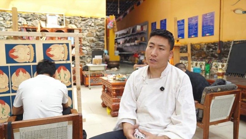 這門古老藝術(shù)在嘉絨大地?zé)òl(fā)新生機。當(dāng)?shù)貍鞒腥藨阎鴮μ瓶ǖ臒o限熱忱,于2020年創(chuàng)辦嘉絨佤唐卡非遺工作室。他們不僅潛心創(chuàng)作,更致力于守護這門技藝的未來:他們廣邀其他傳承人共同挖掘文化精髓;長期開設(shè)免費公益教學(xué),薪火相傳;積極參與行業(yè)交流與高級研修班,在學(xué)習(xí)的過程中拓寬視野。