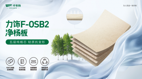 在這一背景下,市場亟需真正具備差異化核心賣點的產(chǎn)品,既能滿足消費者日益嚴苛的需求,又能以獨特的價值主張在激烈的競爭中脫穎而出。如何打造兼具高性能與鮮明特色的板材解決方案,正成為行業(yè)突破的重要方向。為此,千年舟經(jīng)過嚴苛的市場考察及對消費者需求的深度研究,重磅推出——千年舟力飾F-OSB2凈楊板。