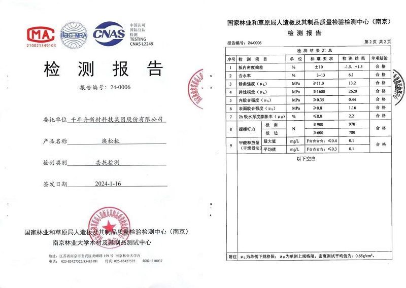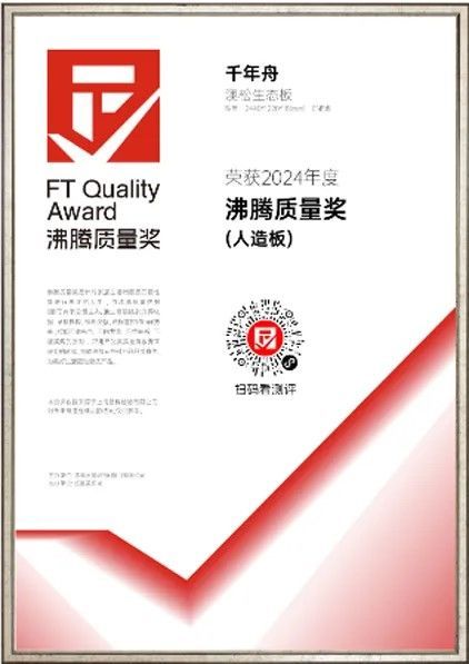 千年舟澳松板生產過程中采用環保膠,成品板材甲醛釋放量低,經權權威檢測,不僅可達日本F☆☆☆☆等級認證,高于E0級環保標準,而且還榮獲CARB、EPA、FSC等多項國際綠色認證,以澳松板為基材的千年舟澳松生態板更是獲得了2024年沸騰質量獎。綠色環保,健康有保障,生活更美好!
