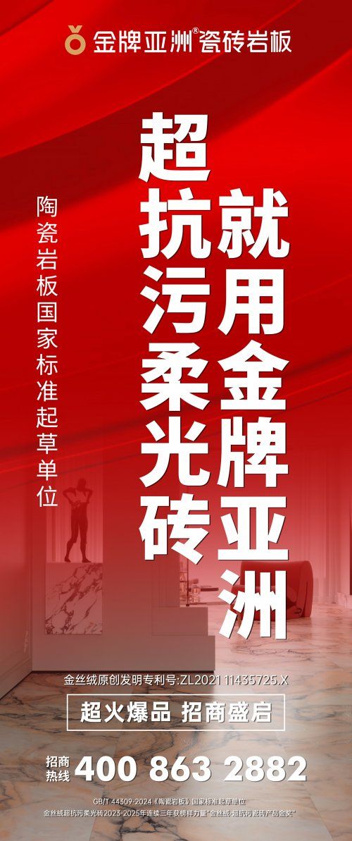 從初代產品立標行業,到五代迭代持續突破;從拿下 “沸騰質量獎” 等權威認可,到 “抗污技術” 達國際領先,金絲絨柔光磚一路闖關,把 “創新基因” 深植每一代產品。它不僅是金牌亞洲的拳頭產品,更成為行業探索 “質感與功能平衡” 的樣本,見證著中國瓷磚品牌向 “精研智造” 進階的決心。
