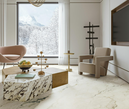 亞細亞的地磚設計風格偏向現代輕奢,通過精致的紋理和細膩的光澤處理,為客廳增添了一份優雅與品位。其產品防滑性能穩定,表面硬度高,能夠有效抵抗日常磨損。