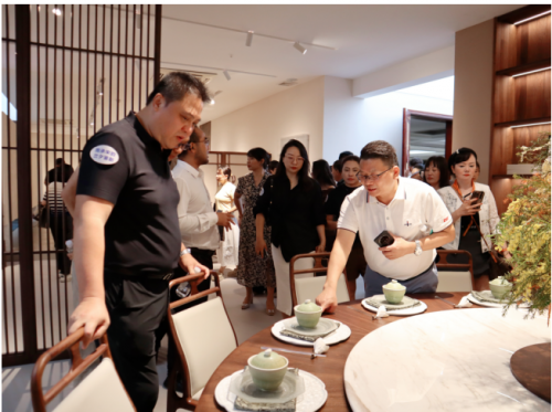 卡琳家具董事長彭青松、佛山市家具行業協會會長周振揚、廣東省湖南商會家居專委會會長陳解元、中國軟裝協會會長楊振江、廣東省家居建材商會秘書長楊傳輝、全屋優品董事長周志勝等行業領導,及家居建材商協會、渠道/平臺、經銷商代表等200余人齊聚一堂,共同開啟這場宋式美學家具“文化盛宴”。