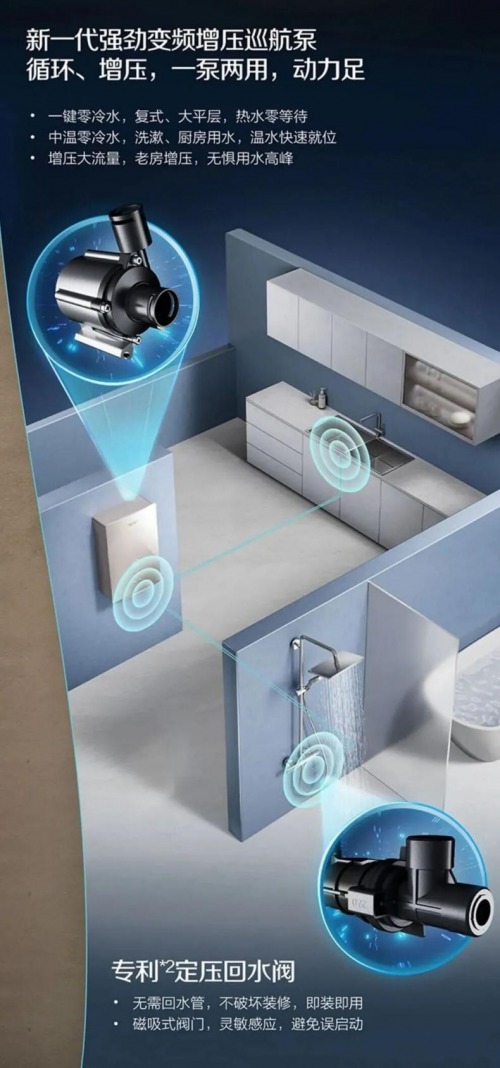 不僅如此,其所采用的專利定壓回水閥設計,無需預埋回水管,也不會破壞原有的裝修格局,無論是老房煥新,還是復式、大平層等大戶型,都能輕松安裝,即裝即用。