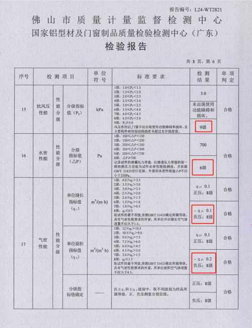 同時,圣堡羅其產品多項關鍵指標達到行業高級標準,如——氣密性8級,水密性能6級,抗風壓9級,均是性能分級里的行業最高級別(滿級)。