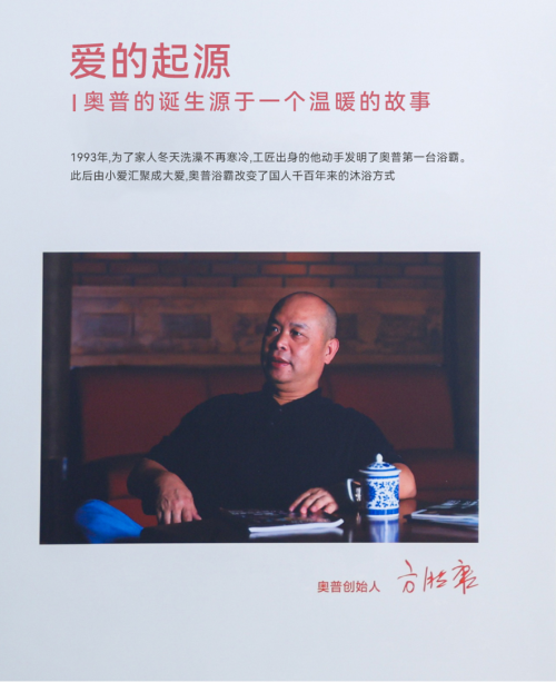 1993年,為了家人冬天洗澡不再寒冷,奧普創始人研發了第一臺集取暖、照明、換氣三功能為一體的產品,并取名為“浴霸”。1996年奧普自主研發第一臺風暖浴霸上市,總裁方勝康被行業、市場公認為"浴霸之父"。三十年后,浴霸早已不止是取暖工具。奧普通過不斷創新,將產品功能從“取暖”擴展到“除菌、除臭、美容、智能恒溫”等多個維度,讓浴霸成為“衛浴的智能電器中樞”。