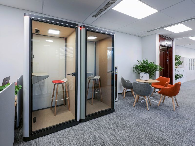 在開放式空間中,Halo 2 靜音艙創(chuàng)造出一片獨立的空間。其隔音設(shè)計具有雙重優(yōu)勢:艙內(nèi)使用者隔絕外部噪音,可以心無旁騖地進行線上會議或者電話;在艙外開放式空間的同事也能暢所欲言,彼此互不干擾,提升空間的協(xié)作效率。