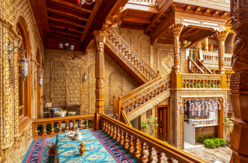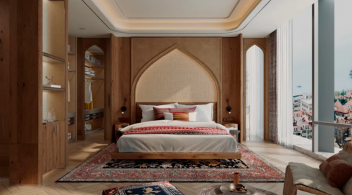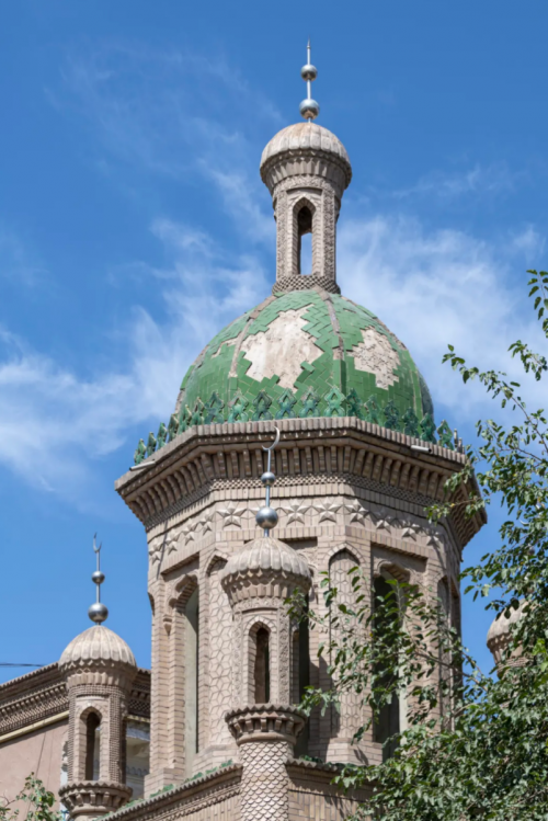 在色彩的運用上,千年舟的設(shè)計師們別具匠心。他們選取了古城建筑特有的土黃色與咖色漸變。土黃色,恰似沙漠在陽光照耀下的溫暖色澤,熱烈而充滿活力,仿佛能讓人感受到沙漠中風(fēng)沙的吹拂,陽光的炙烤,將西域大地的熱情毫無保留地展現(xiàn)出來。而咖色的深淺過渡,則像是時光在磚石上留下的斑駁痕跡,為整個紋樣增添了一份厚重的歷史質(zhì)感。這種暖棕漸變的色彩搭配,不僅在視覺上給人以和諧、舒適的感受,更巧妙地將維吾爾族文化里的西域古韻與建筑美學(xué),悄然織入到每一寸空間肌理之中。