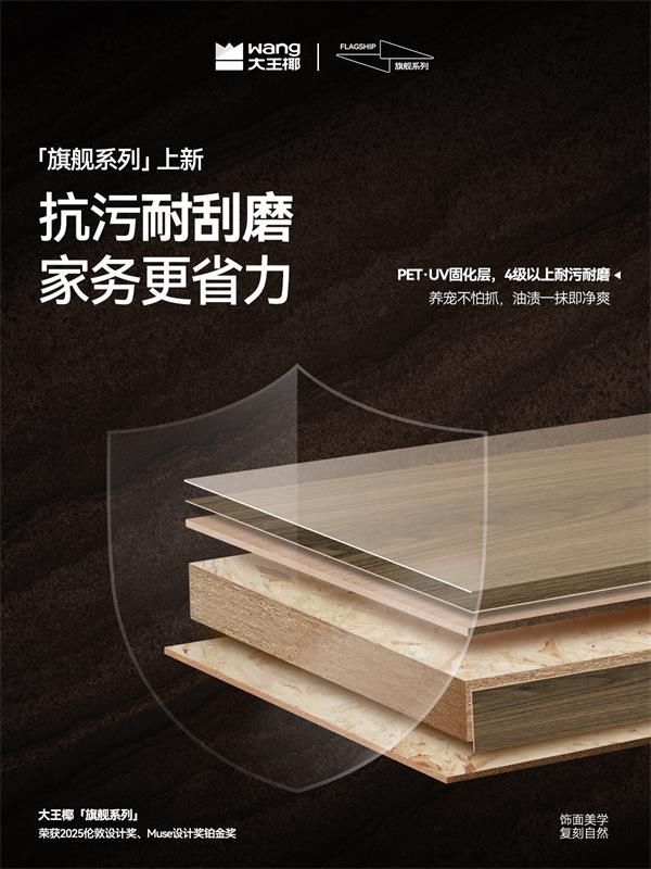 大王椰以全球化視野整合亞歐設計資源,投入超千萬研發資金打造美學產品矩陣。該系列花色涵蓋高清木紋、時尚金屬漆等經典先鋒工藝,極致演繹全球室內美學潮流。這種前瞻性的戰略布局確保了品牌在核心競爭層面的持續領先優勢。