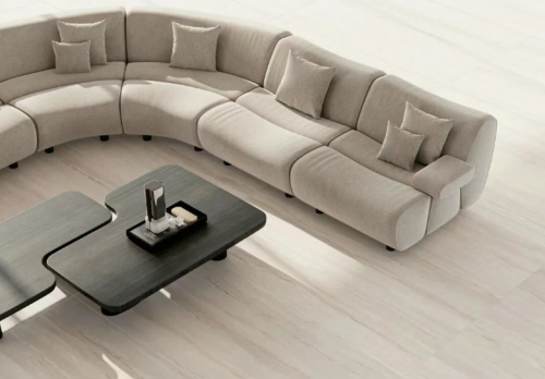 技術優勢:L&D唯美陶瓷長期與意大利著名設計工作室合作,引入全球前沿的數碼噴墨與干粒疊加技術,實現大理石、金屬、水泥等材質的高度擬真;產品表面采用“柔感釉”處理,觸感細膩且防滑耐磨,適用于高端住宅、酒店及商業空間。