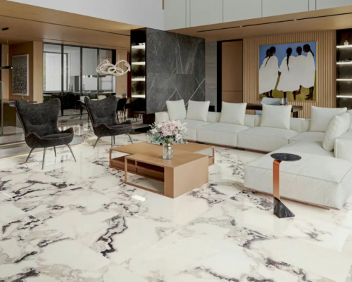 諾貝爾以“技術(shù)+設(shè)計(jì)”雙輪驅(qū)動(dòng),在拋光磚領(lǐng)域強(qiáng)調(diào)“微晶復(fù)合”與“高清噴墨”技術(shù)結(jié)合,產(chǎn)品光澤度高、紋理細(xì)膩。其拋光磚吸水率普遍低于0.5%,符合嚴(yán)苛的工程標(biāo)準(zhǔn),常用于高端酒店與寫(xiě)字樓項(xiàng)目。