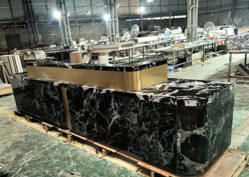 劉孝斌告訴記者,他經過8年多熱彎行業洗禮和打磨,最終選定一些能熱彎的巖板產品,大約有2百多款不同花色的巖板,主要有亮光、啞光、奢石、洞石、木紋、大理石等系列,花色很齊全,基本覆蓋95%以上做熱彎產品的客戶,都能挑選到心意的花色,自己出售的熱彎巖板保證在熱彎工廠出品時不會出現任何問題,比如亮光不會變啞光有問題包賠。熱彎后不會有掉色的問題有問題包賠。