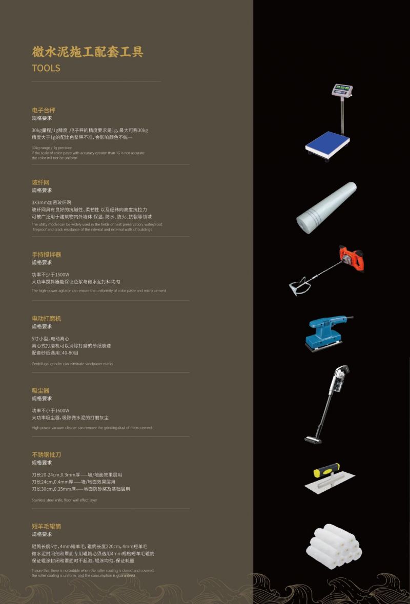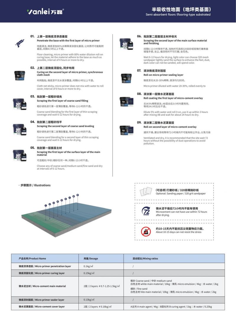 材料時效:混合后的微水泥需在3小時內使用完畢